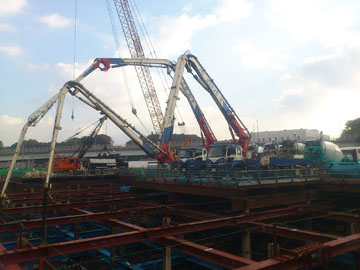 ビル・マンション・学校・高速道路・公共施設等を、コンクリートポンプ車で生コンクリート圧送しています。