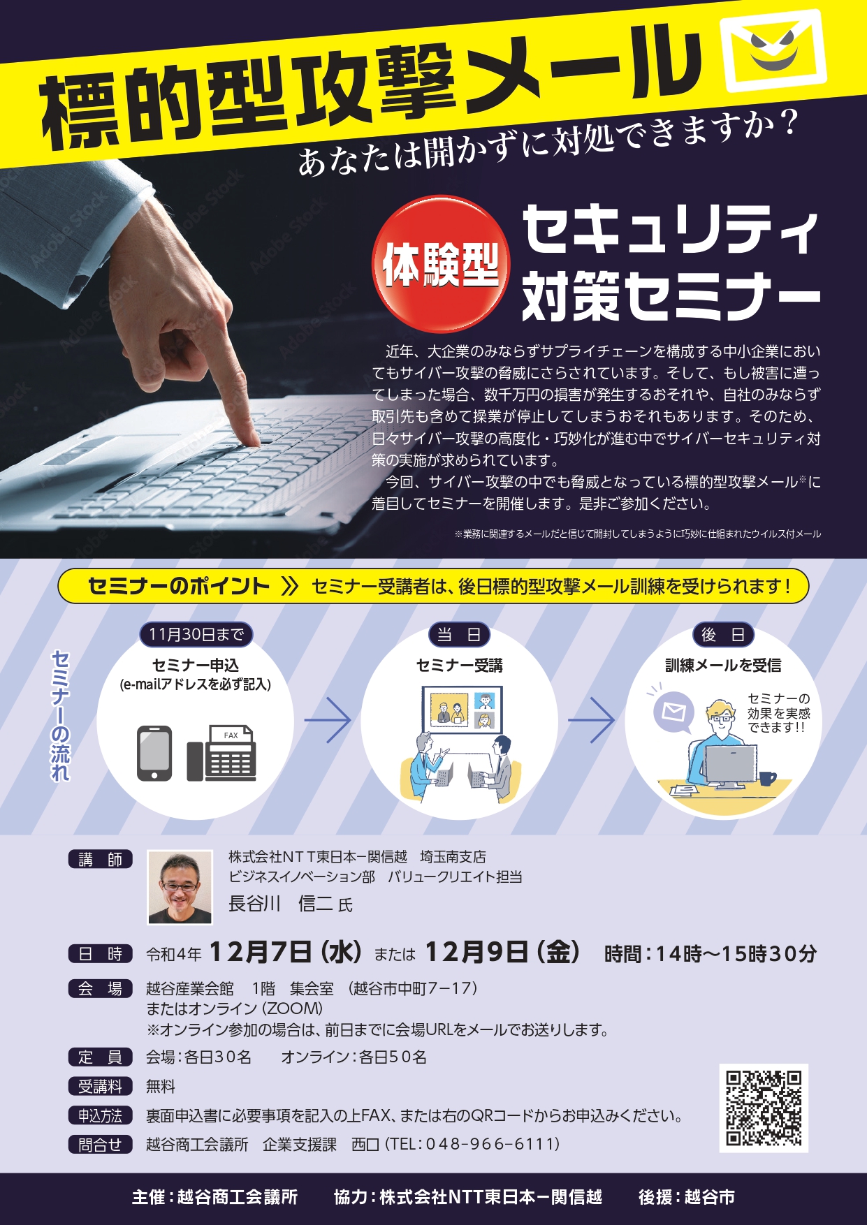 セミナー受講者は、後日標的型攻撃メール訓練を受けられます!詳しくはチラシをご確認ください。