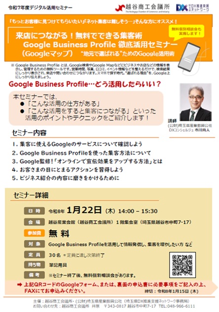 本セミナーでは、集客につながる具体的な活用方法や、Google監修の宣伝効果アップのポイントを紹介します。