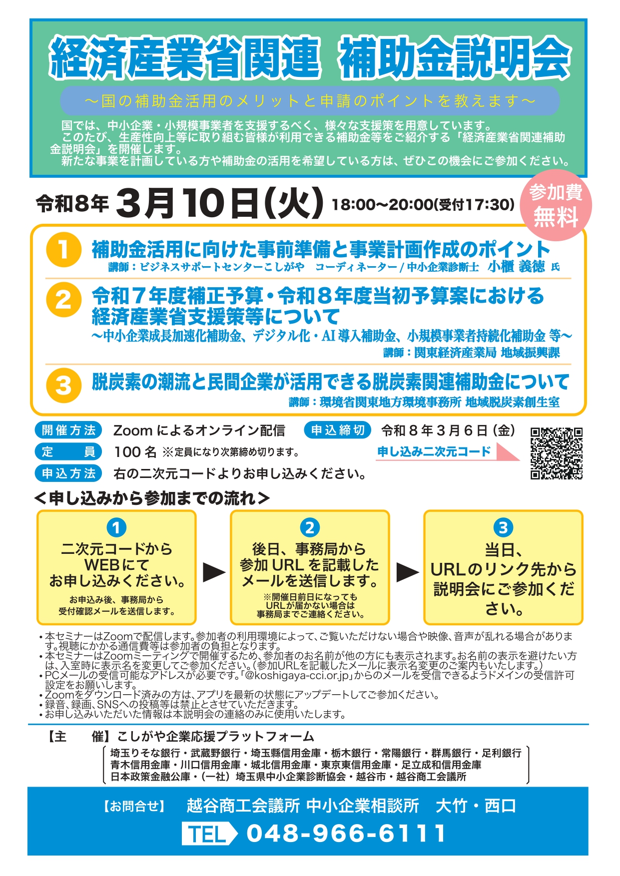 | 問い合わせ先 | 越谷商工会議所 中小企業相談所 大竹・西口 |