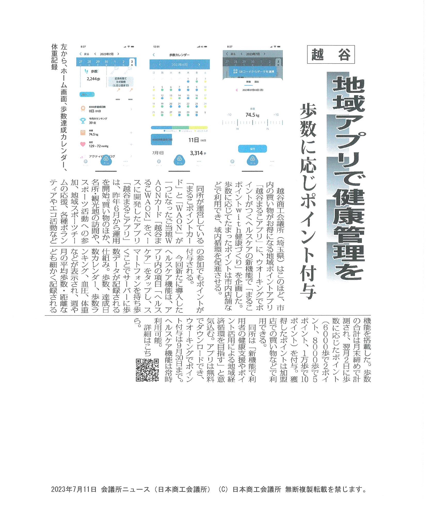 令和5年6月15日(木)から開始したヘルスケア機能を利用し企画したウォーキングイベント「まるこポイントwith健康づくり」が、日本商工会議所発行の「会議所ニュース」に掲載されました。
